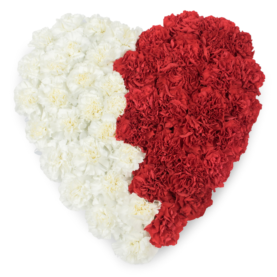 This vibrant mixed carnations heart designed by Handy Flowers contains white and red carnations, which are some of the most preferred flowers for expressing sympathy.